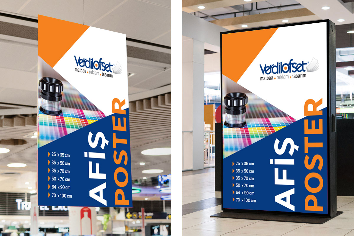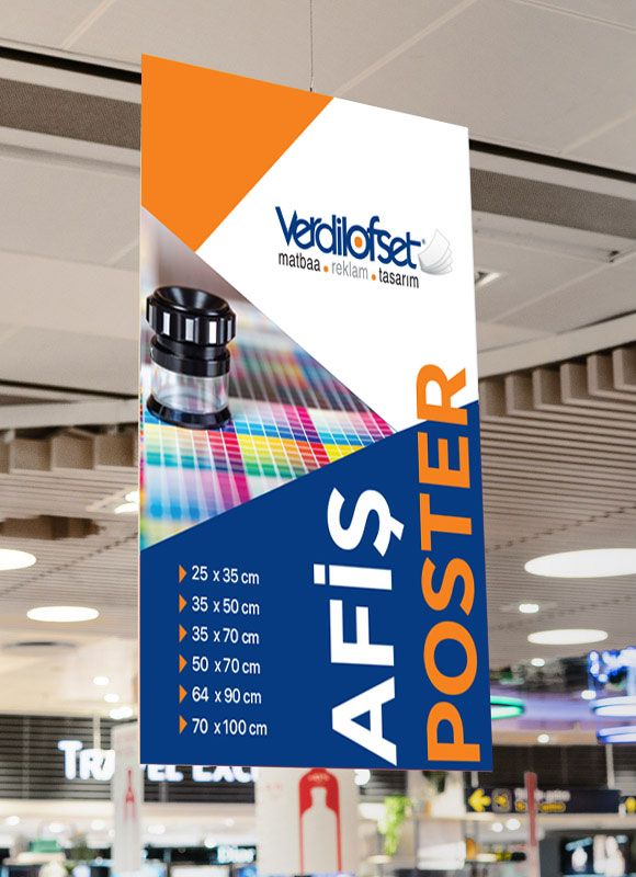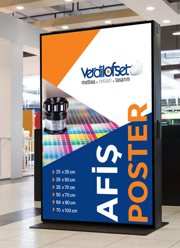 Afiş Poster Baskı Ölçüleri: 25x35cm, 35x50cm, 35x70cm, 50x70cm, 64x90cm, 70x100cm